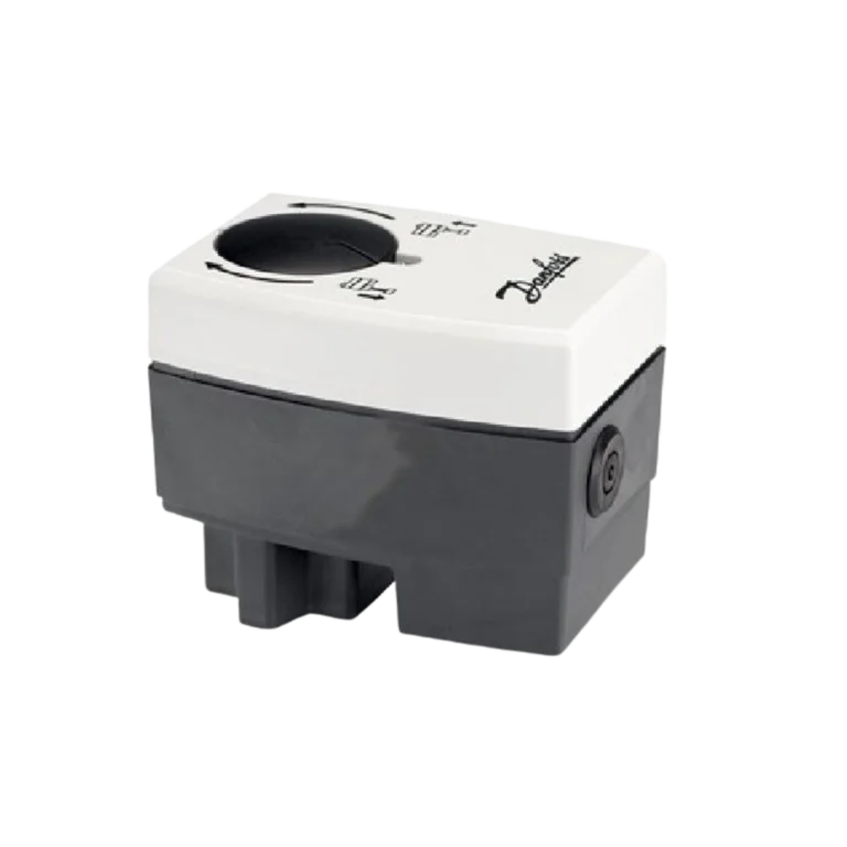 Atuador elétrico para válvulas de controle independentes de pressão AB-QM, ideal para automação HVAC (água gelada/aquecida) em fan-coils, VAVs e circuitos secundários. Opera em 24 V com comando liga/desliga (ON-OFF), montagem direta na válvula e indicação clara de posição.