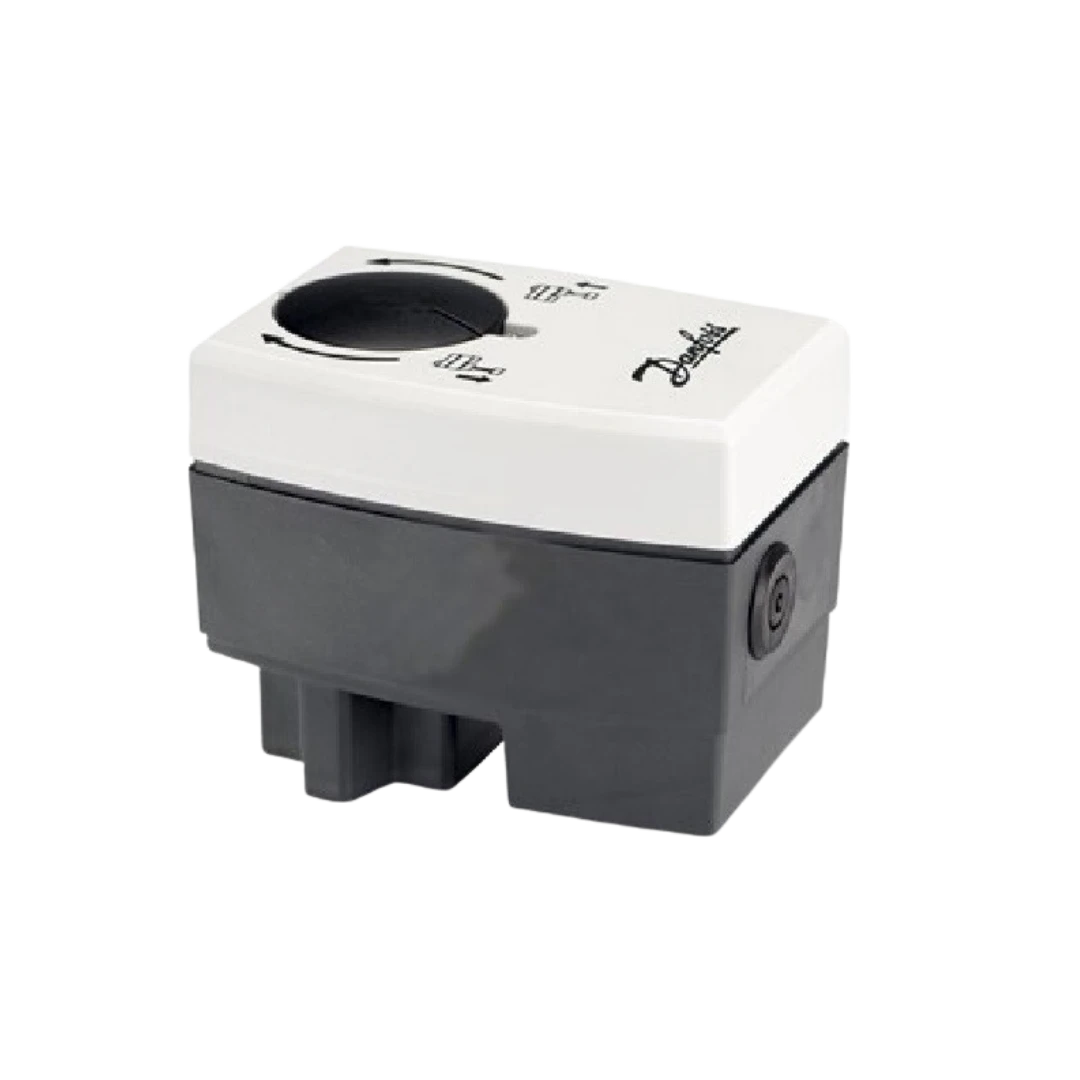 Atuador elétrico para válvulas de controle independentes de pressão AB-QM, ideal para automação HVAC (água gelada/aquecida) em fan-coils, VAVs e circuitos secundários. Opera em 24 V com comando liga/desliga (ON-OFF), montagem direta na válvula e indicação clara de posição.