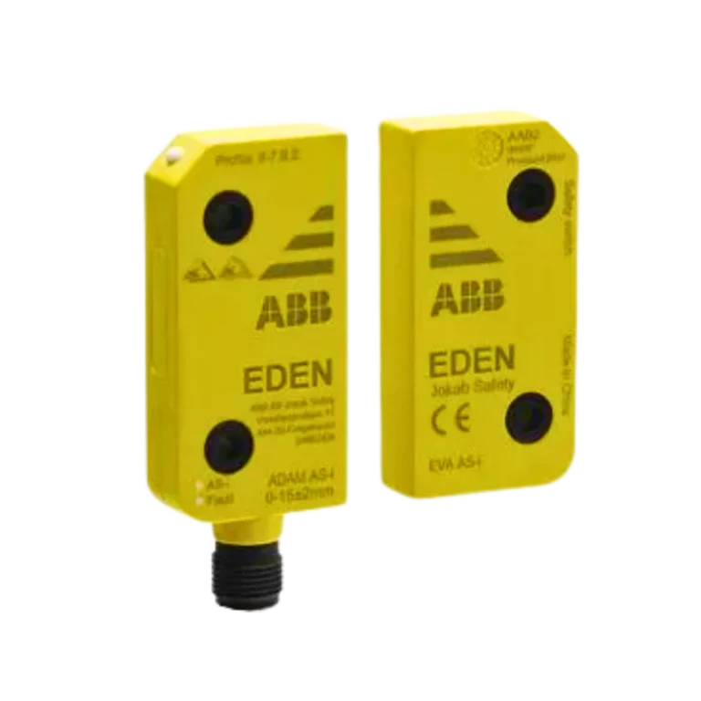 Atuador EVA para o sensor de segurança ADAM (família ABB/Jokab), formando o par magnético codificado do sistema de intertravamento sem contato para portas e resguardos. Ideal para proteções móveis com desalinhamento frequente. • Função: atuador magnético codificado para o sensor ADAM • Aplicação: portas basculantes/correr, tampas e grades de proteção • Vantagens: tolera desalinhamentos, sem desgaste mecânico, montagem rápida • Integração: compatível com controladores de segurança ABB (ex.: Vital/Pluto)