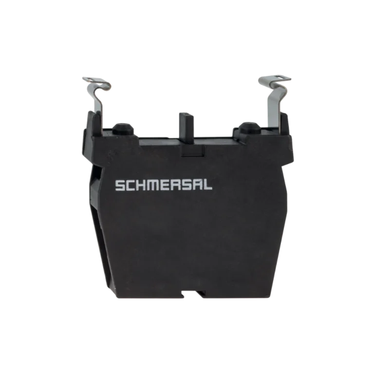 Bloco de contatos auxiliares 1NA+1NF para botoeiras/comutadores, ampliando lógicas de comando em painéis.