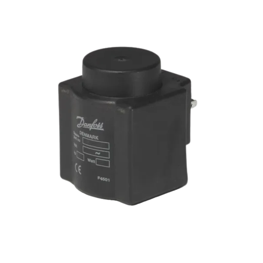 Bobina solenoide Danfoss 110 V/10 W destinada a válvulas para serviço de vapor, garantindo acionamento confiável do piloto/solenóide em ambientes industriais.