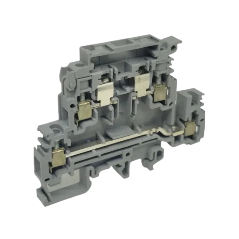 Borne SAK, duplo nível, conexão por mola, para condutores até 10 mm². Cor cinza. • Conexão: mola • Configuração: duplo nível (2L) • Bitola nominal: até 10 mm² • Cor: cinza (CZ) • Montagem: trilho DIN 35 mm • Recursos: ponteável, teste