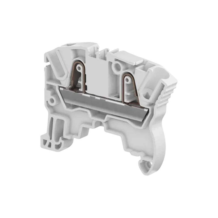 Borne ZK com mola para 4 mm², compacto e versátil, cor cinza. • Conexão: mola • Configuração: passagem • Bitola nominal: 4 mm² • Cor: cinza (CZ) • Montagem: trilho DIN 35 mm