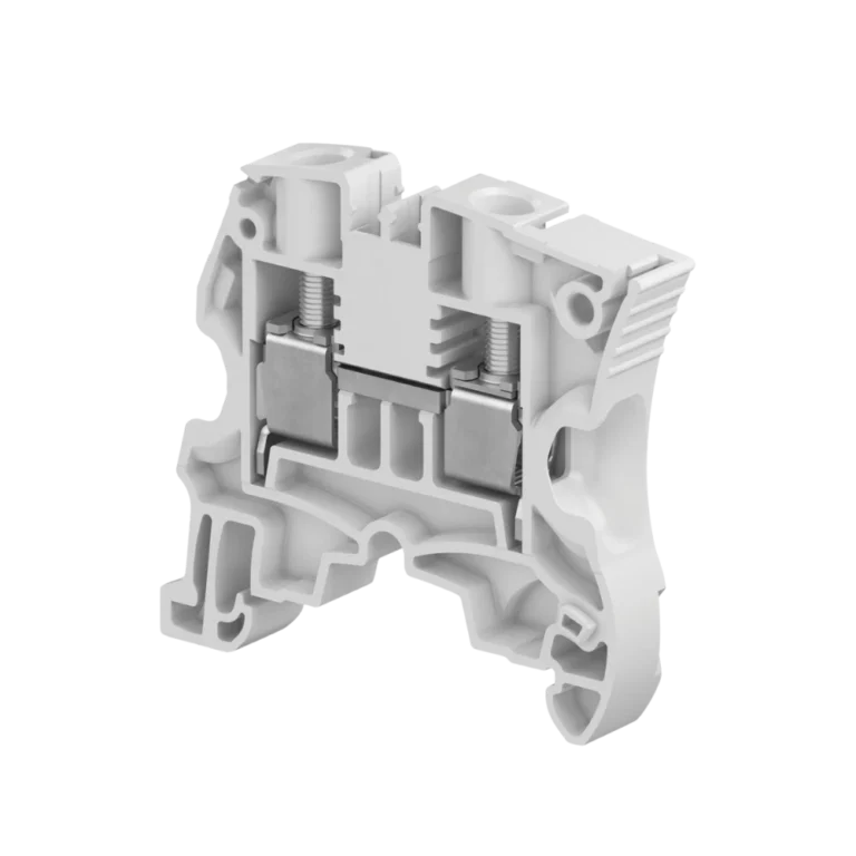 Borne ZS de parafuso para condutores até 10 mm², robusto para potência/força. Cor cinza. • Conexão: parafuso • Configuração: passagem • Bitola nominal: até 10 mm² • Cor: cinza (CZ) • Montagem: trilho DIN 35 mm