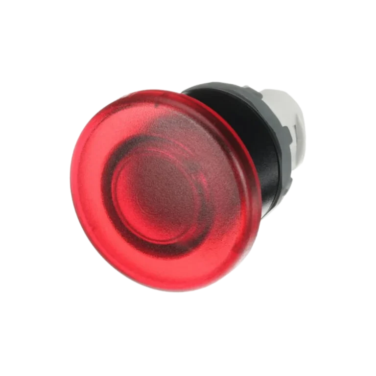 Botão de pulso tipo cogumelo vermelho iluminado para comando com indicação local. • Função: pulso momentâneo • Cor/indicação: vermelho, iluminado • Contatos: 1NA + 1NF (11R) • Iluminação: sim • Montagem: painel