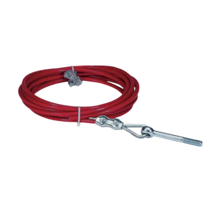 Cabo de aço para chaves de emergência por acionamento a cabo (rope pull), permitindo parada de emergência ao longo de esteiras e linhas. • Material: aço galvanizado (opções com revestimento) • Diâmetro/comprimento: conforme projeto • Acessórios: esticadores, terminais e olhais (conforme kit) • Aplicação: chaves tipo ZQ / tirante • Uso: linhas longas, acesso contínuo ao E-Stop