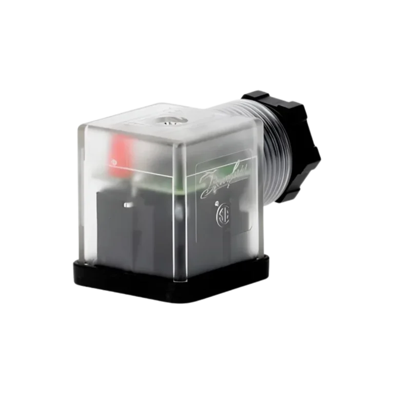 Conector para bobina de válvula com LED integrado para indicação de energização em 220 V AC/DC. Facilita diagnóstico em campo e reduz tempo de manutenção.