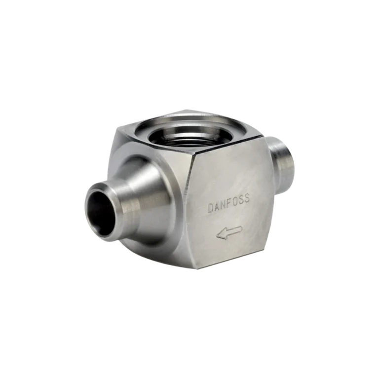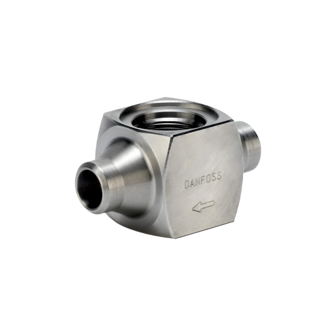 Corpo CVH para montagem de válvulas piloto em sistemas de regulação Danfoss (ex.: ICS/ICLX/ICM). Permite instalar pilotos de pressão/superaquecimento, formando conjuntos modulares de controle.