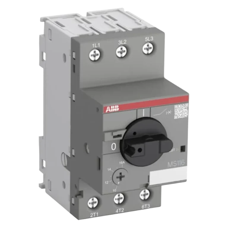 Disjuntor-motor MS116 com ajuste 10…16 A, indicado para motores de baixa tensão em partidas diretas, sem necessidade de fusíveis a montante (conforme coordenação).