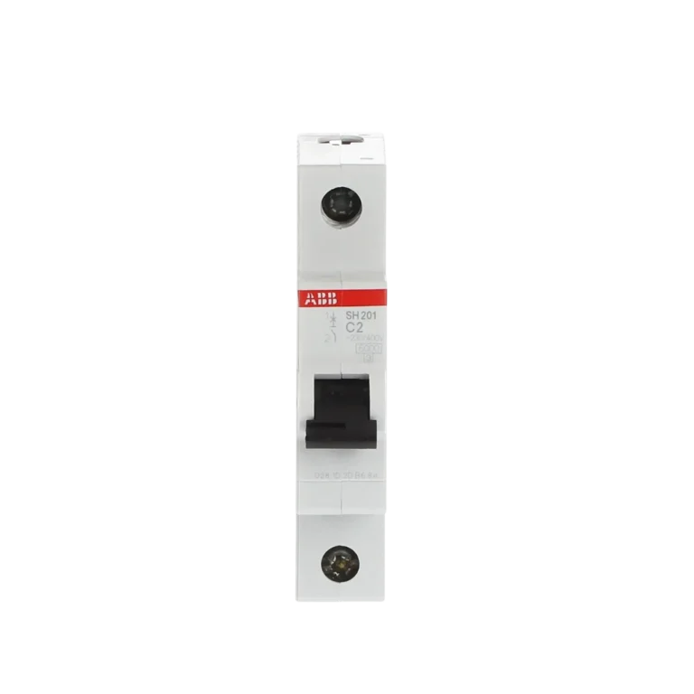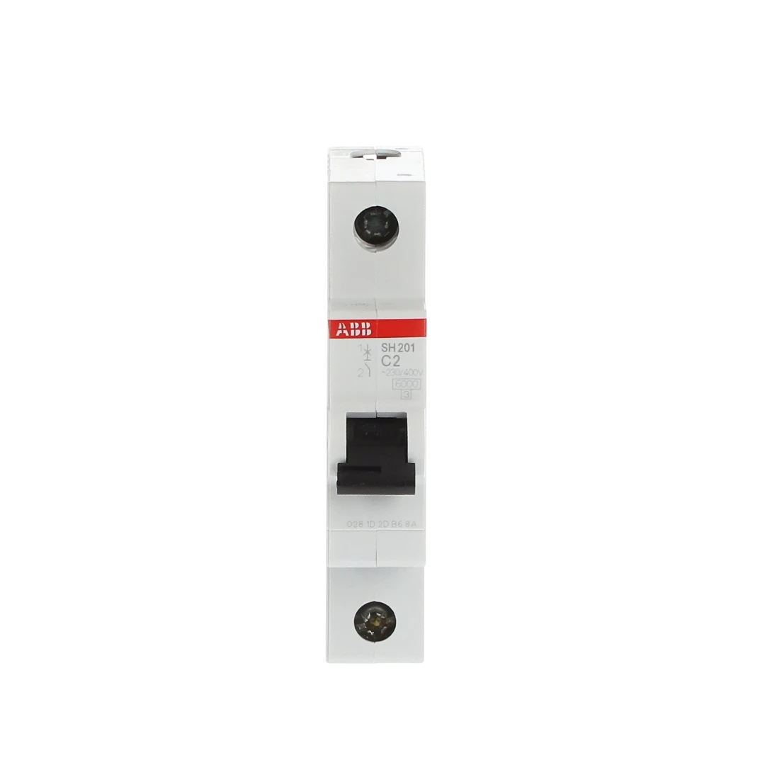 Minidisjuntor 1P curva C 2 A para proteção de circuitos CA/CC de baixa corrente em painéis.