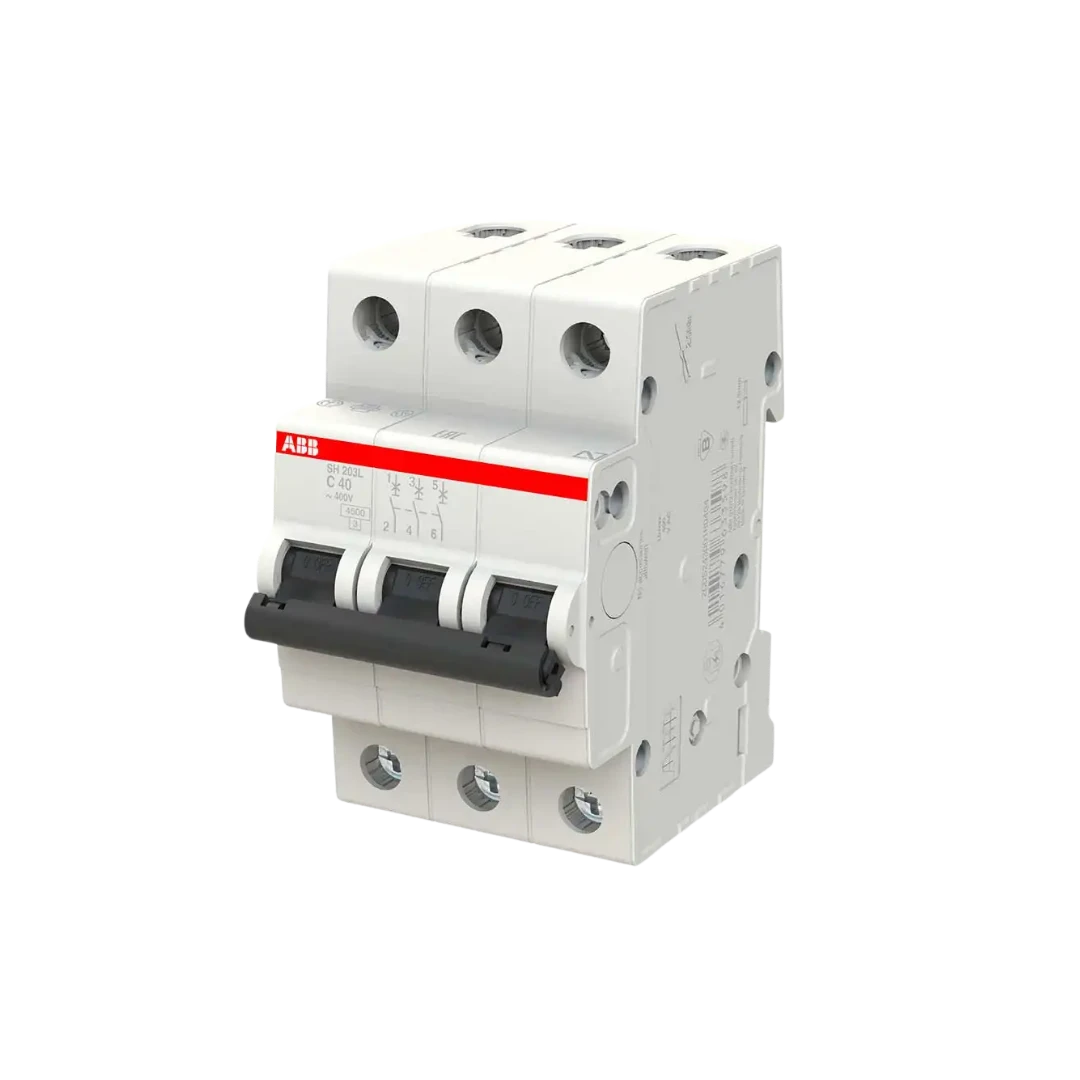 Minidisjuntor 3P curva C 16 A para proteção de circuitos CA até 440 V, ideal para cargas indutivas moderadas.