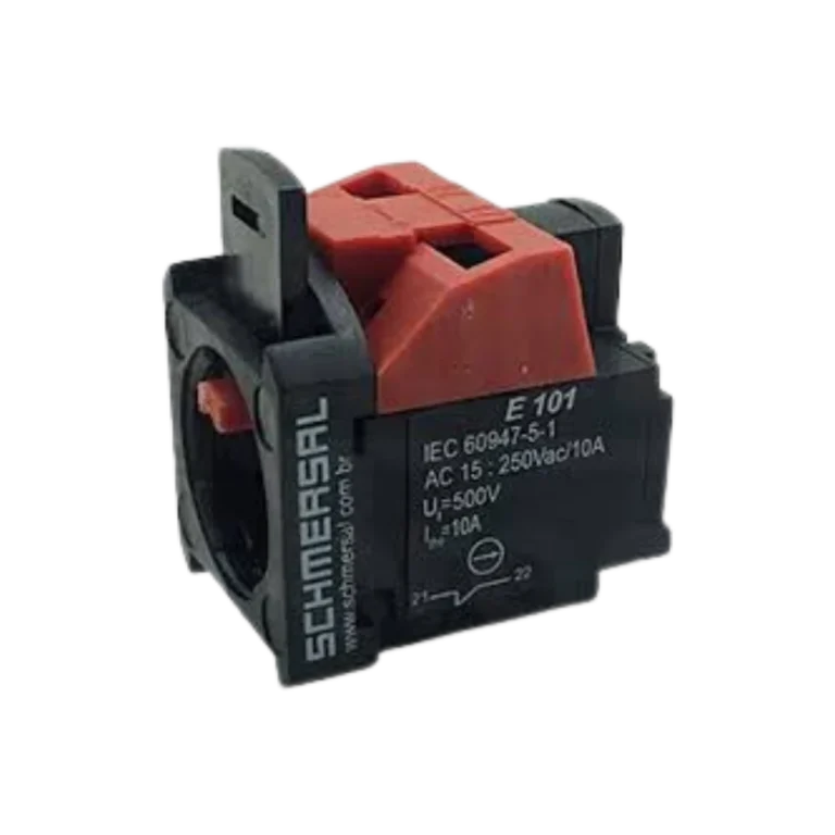 Bloco de contato E101 com 1NF (1 contato normalmente fechado) para botoeiras/seletores ACE. Adequado a circuitos de segurança e intertravamento. • Configuração elétrica: 1 × NF • Compatibilidade: frentes Ø22/Ø30 mm (linha ACE) • Conexão: bornes industriais (parafuso/mola, conforme) • Montagem: clip/encaixe rápido ao atuador • Uso: parada, bloqueio e supervisão