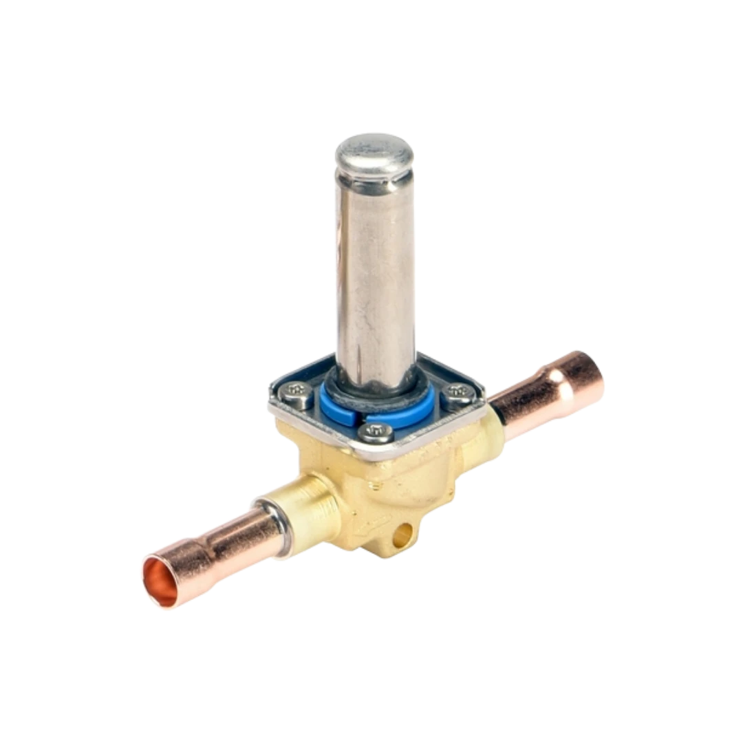 Válvula solenoide EVR 3 para refrigeração (HFC/HFO/CO₂ conforme vedação), bitola 3/8″, usada em linhas de líquido/sucção/hot-gas. Construção robusta para serviço contínuo.
