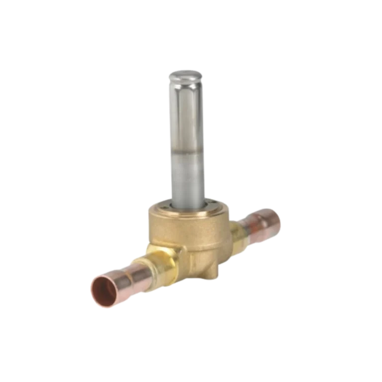 Válvula EVRAT 15 com operador manual, indicada para controle on/off e manobras locais durante comissionamento e manutenção em sistemas de refrigeração.