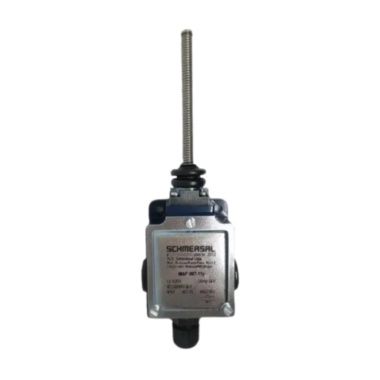 Chave fim-de-curso MAF de uso geral, indicada para fim de curso e presença de peça. • Contatos: 11Y (1NA + 1NF) • Cabeçote/atuador: versão 007 (segundo catálogo) • Corpo: industrial, resistente a vibração • Instalação: furação padrão, ajuste de posição • Ciclos: adequado a operação frequente