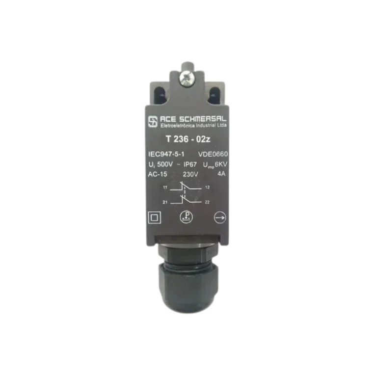 Chave fim-de-curso TS 236 com dupla redundância de contato 02Z (2NF) para aplicações que requerem contatos de segurança. • Contatos: 02Z = 2 × NF • Cabeçote: série TS (conforme versão) • Função: fim de curso/monitoramento seguro • Instalação: furação padrão industrial • Aplicações: paradas, detecção de batente