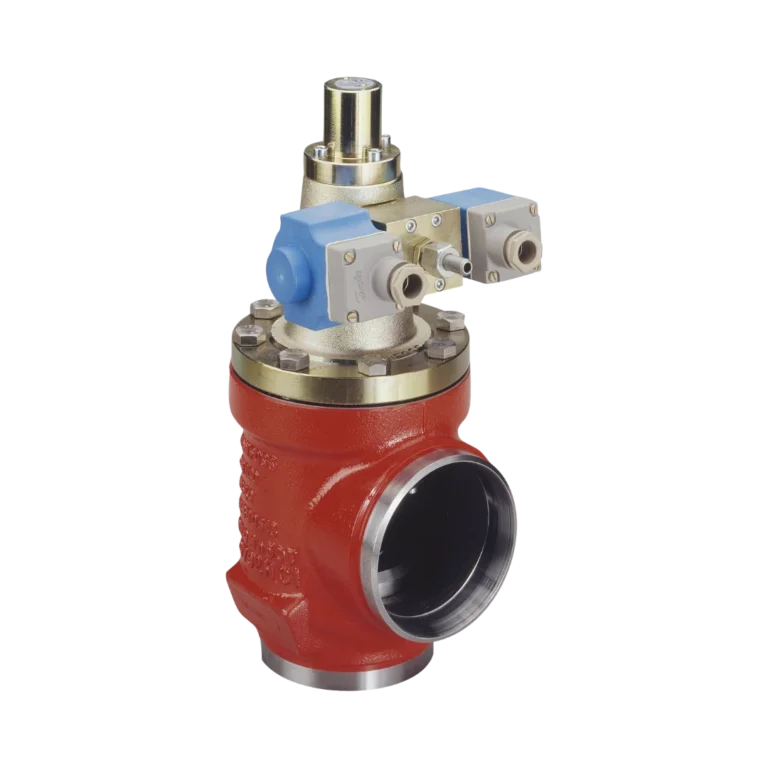 Válvula solenoide angular GPLX 125A, conexão 5″, projetada para altas vazões em utilidades industriais, com resposta rápida e corpo robusto.