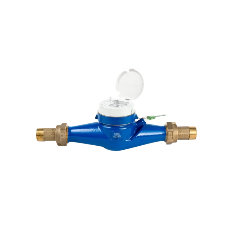 Medidor de vazão tipo multijato DN25 para água fria, com kit de conexões, ideal para medições prediais/industriais.