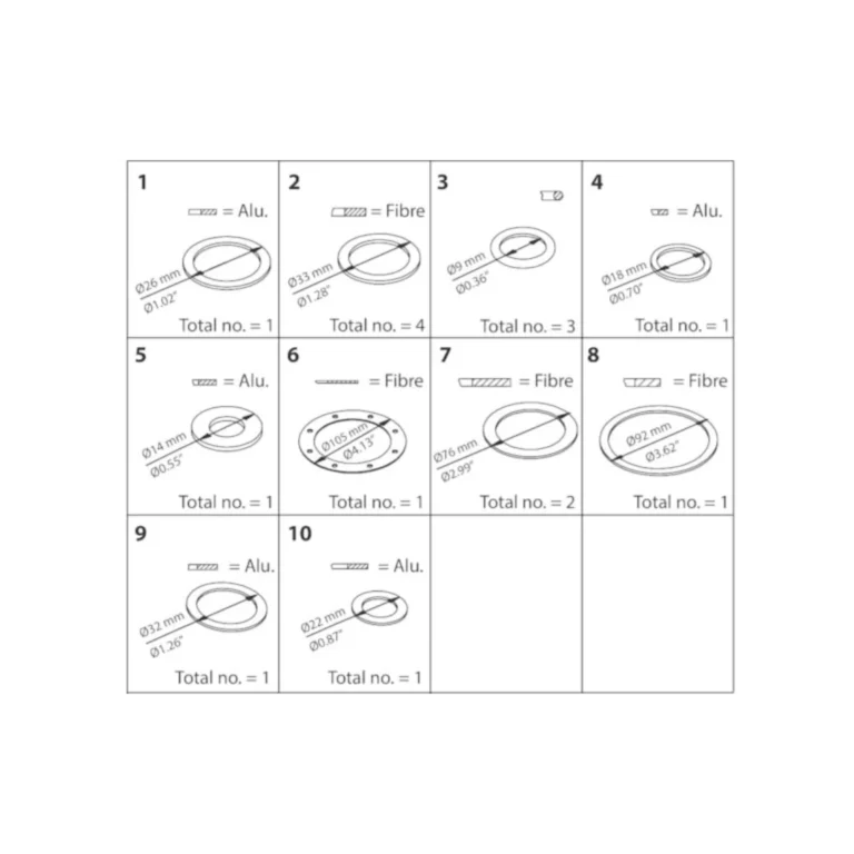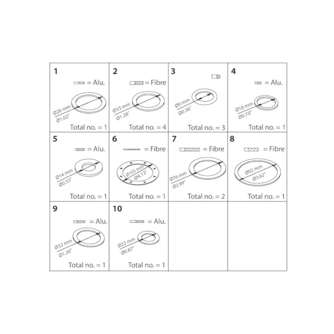 Conjunto de juntas para válvulas PM50, garantindo recomposição da estanqueidade e desempenho do conjunto.