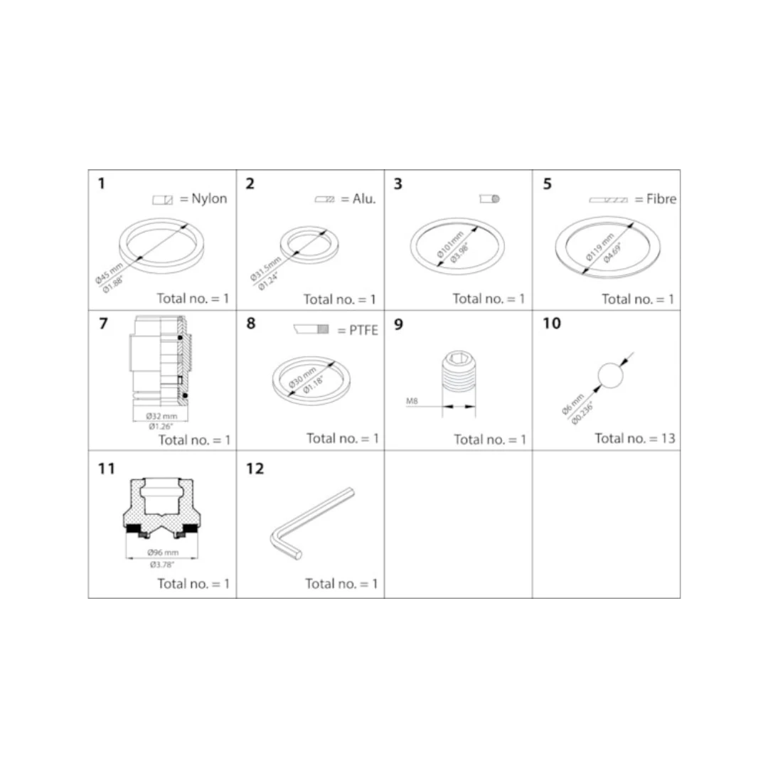 • Conteúdo: vedações/juntas e componentes de desgaste