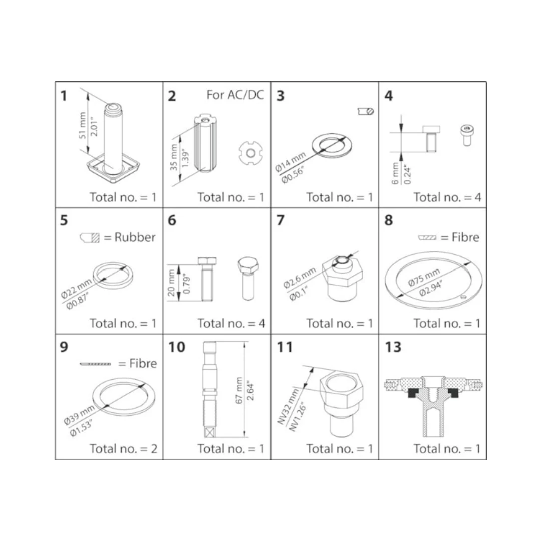 • Conteúdo: O-rings/juntas, assentos e itens de desgaste