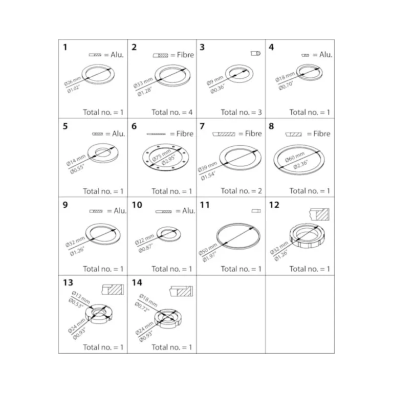 Conjunto de vedações para PM50 e PMFL300, garantindo vedação confiável em operação contínua.