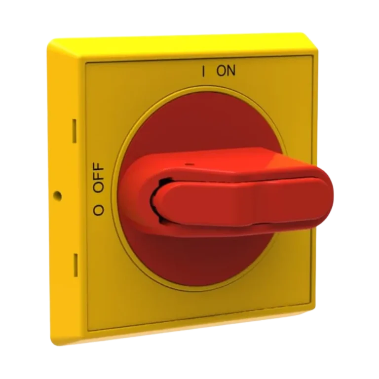 Manopla amarela OHYS2AJ para chaves OT16…OT125F3, padrão de seccionamento/segurança com operação em porta. • Compatibilidade: OT16…OT125F3 • Cor: amarela (isolação/seção de segurança) • Montagem: porta de painel (acionamento externo) • Indicação: clara ligado/desligado • Cadeado: suporte a LOTO (conforme kit)