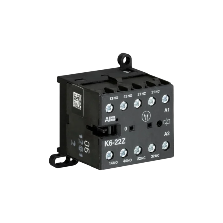 Minicontator auxiliar compacto para lógica de comando, intertravamentos e expansão de contatos em painéis.