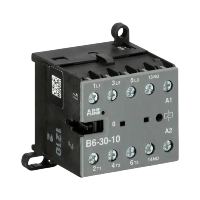 Minicontator B6 para aplicações leves, bobina 220 Vca; três polos principais e auxiliar. • Bobina: 220 Vca • Principais: 3 NA • Auxiliar: 1 NA (-10) • Montagem: trilho DIN
