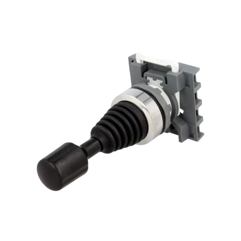Joystick industrial para comandos de máquinas, com cabeça ergonômica e retorno por mola, ideal para movimentos manuais em dois eixos. • Tipo: operador joystick Ø22 mm • Ação: retorno por mola (conforme versão) • Contatos: blocos NA/NF acopláveis (configuração conforme necessidade) • Aplicações: pontes rolantes, AGVs, manipuladores