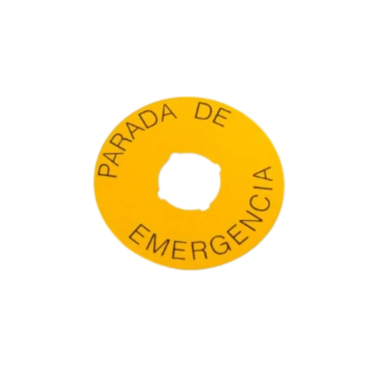 Placa de identificação “PARADA DE EMERGÊNCIA” para botoeiras de emergência, garantindo padronização e alta visibilidade no painel. • Uso: sinalização de E-STOP • Diâmetro compatível: Ø22 mm (linha ABB) • Cor/legenda: padrão segurança (fundo destacado) • Aplicação: portas de painéis, mesas de comando