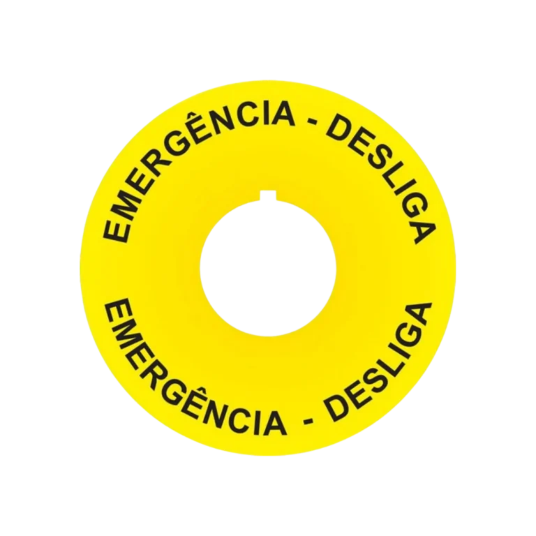 Placa de identificação “EMERGÊNCIA” para botoeiras e painéis. Alta visibilidade e fixação prática para conformidade e segurança operacional. • Texto: EMERGÊNCIA • Dimensão/ref.: Z 224/60 • Material: plástico técnico/laminado (industrial) • Fixação: adesiva/parafusada (conforme) • Uso: botões de parada e postos de operação