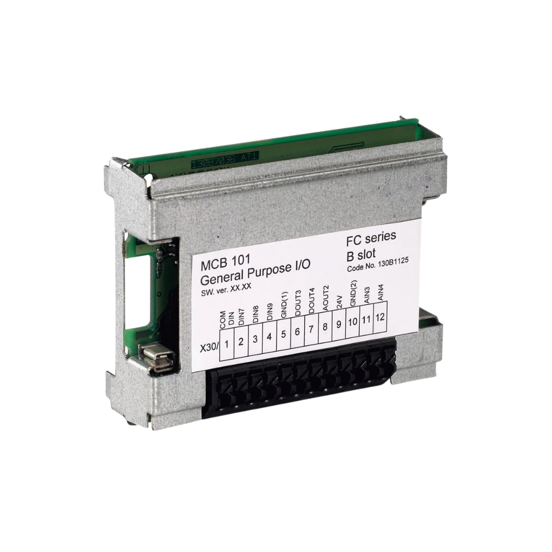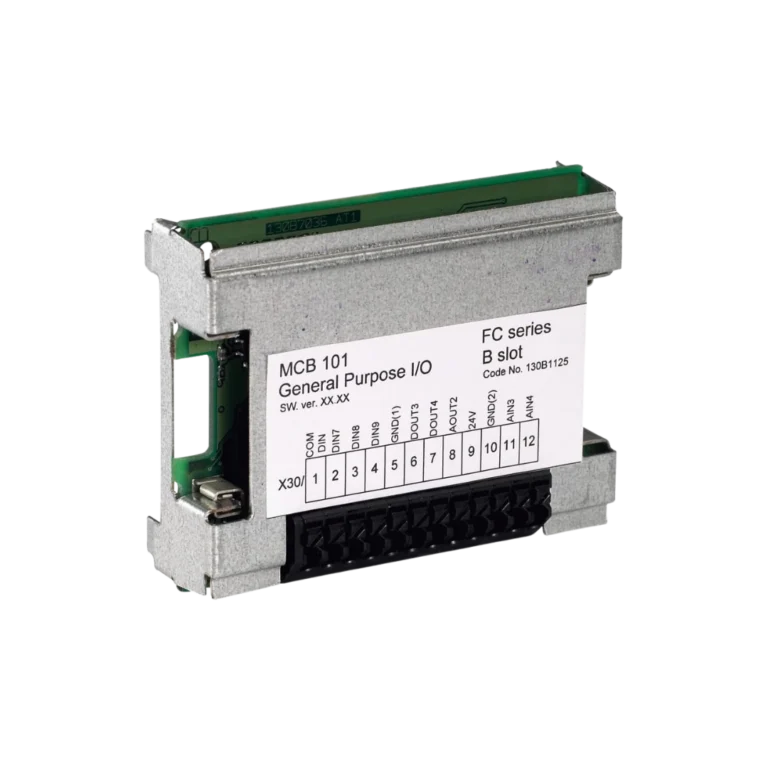 Placa opcional MCB 105 para VLT FC300, voltada a recursos adicionais de comunicação/controle.