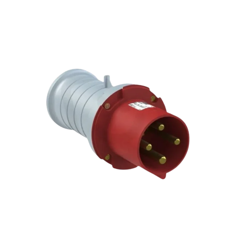 Plugue 3P+T 63 A para redes trifásicas, IP44, ideal para conexões robustas em ambientes industriais. • Tensão: 380/415 V · Corrente: 63 A • Proteção: IP44 • Recursos: alívio de tração, prensa-cabo • Uso: máquinas, QGBT, tomadas industriais