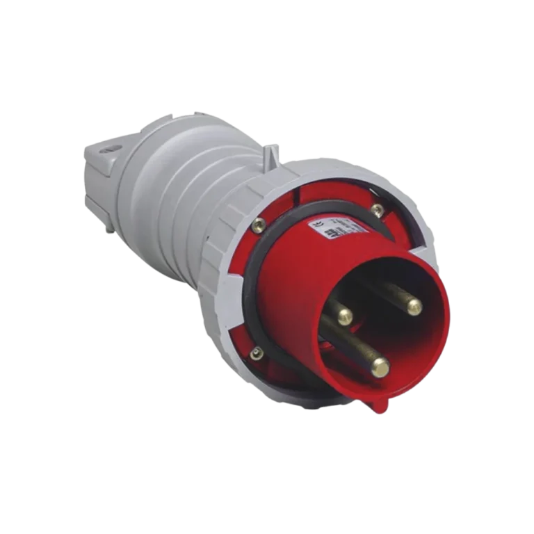 Plugue 3P+T 63 A com IP67, máxima vedação para aplicações severas. • Faixa: 380/415 V · 63 A • Grau: IP67 (poeira/imersão) • Construção: termoplástico reforçado, junta O-ring • Instalação: prensa-cabo e travamento seguro
