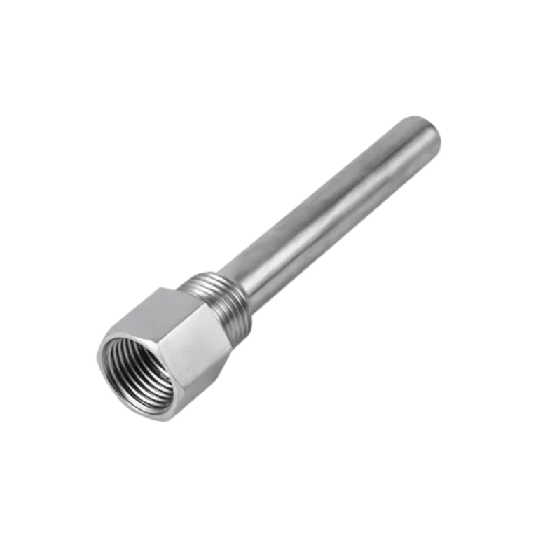Poço de proteção em aço inox para sensores de temperatura, aumenta a vida útil e permite manutenção sem parar o processo.