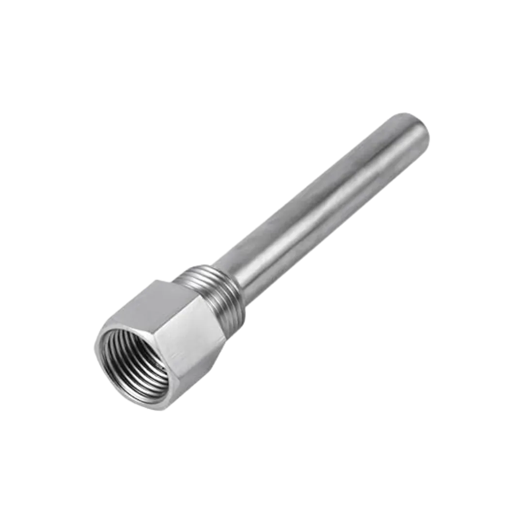 Poço de proteção em aço inox para sensores de temperatura, aumenta a vida útil e permite manutenção sem parar o processo.