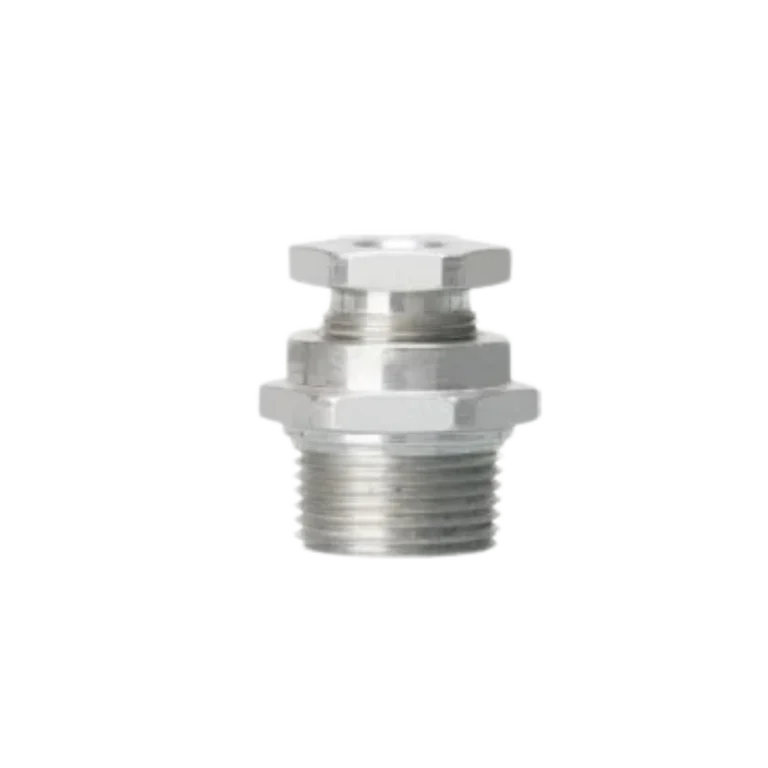 Prensa-cabos metálico tipo A2 em aço inox, rosca métrica M20, com anel de vedação elastomérico para passagem segura de cabos.