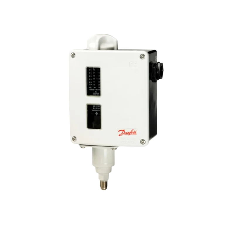 Pressostato Danfoss RT1 para comando/alarme em vácuo e baixa pressão positiva, com alta repetibilidade para aplicações industriais e de refrigeração.