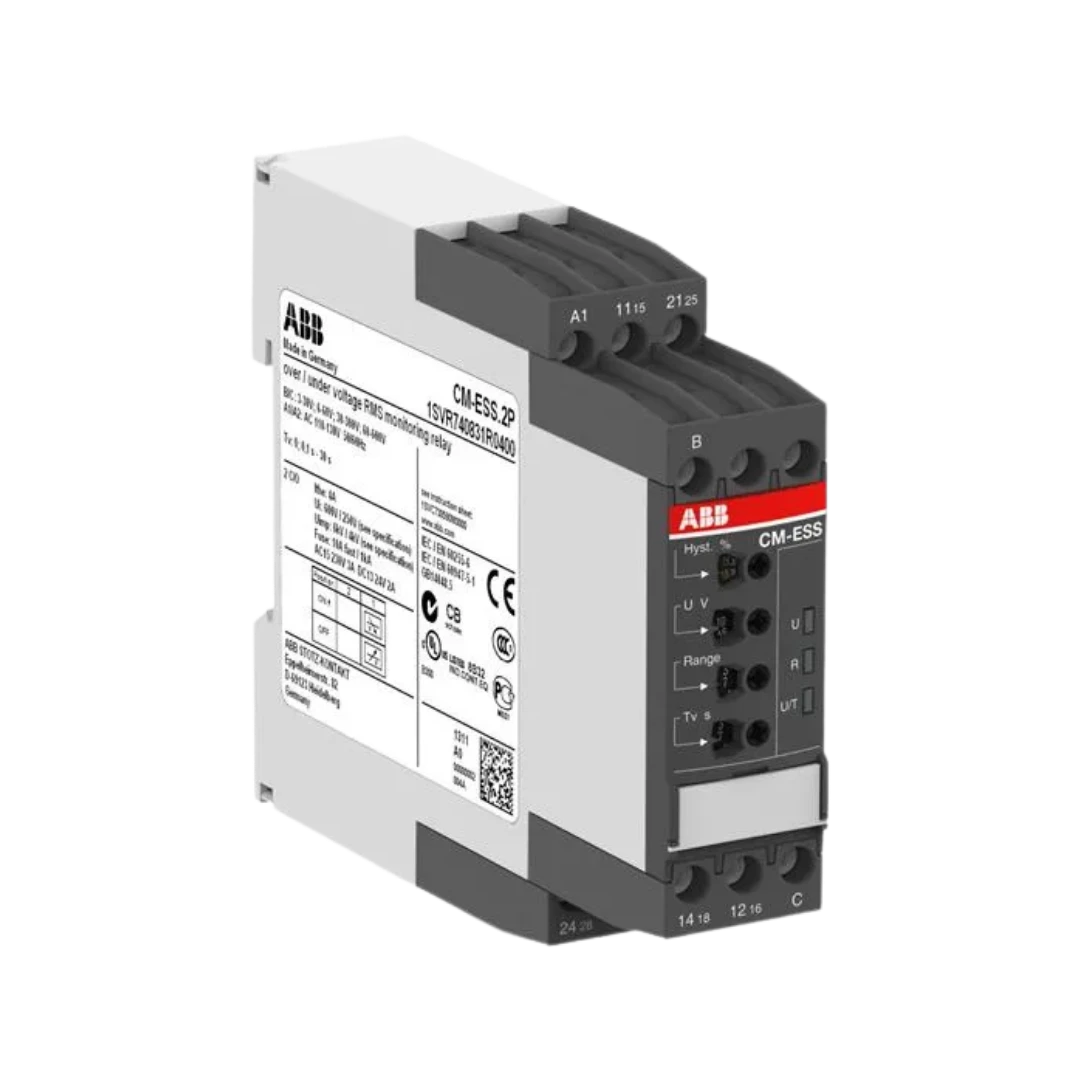 Relé de monitoramento de tensão (1~) até 600 V, detecta sub/sobretensão e condições fora de janela para desligamentos seguros.