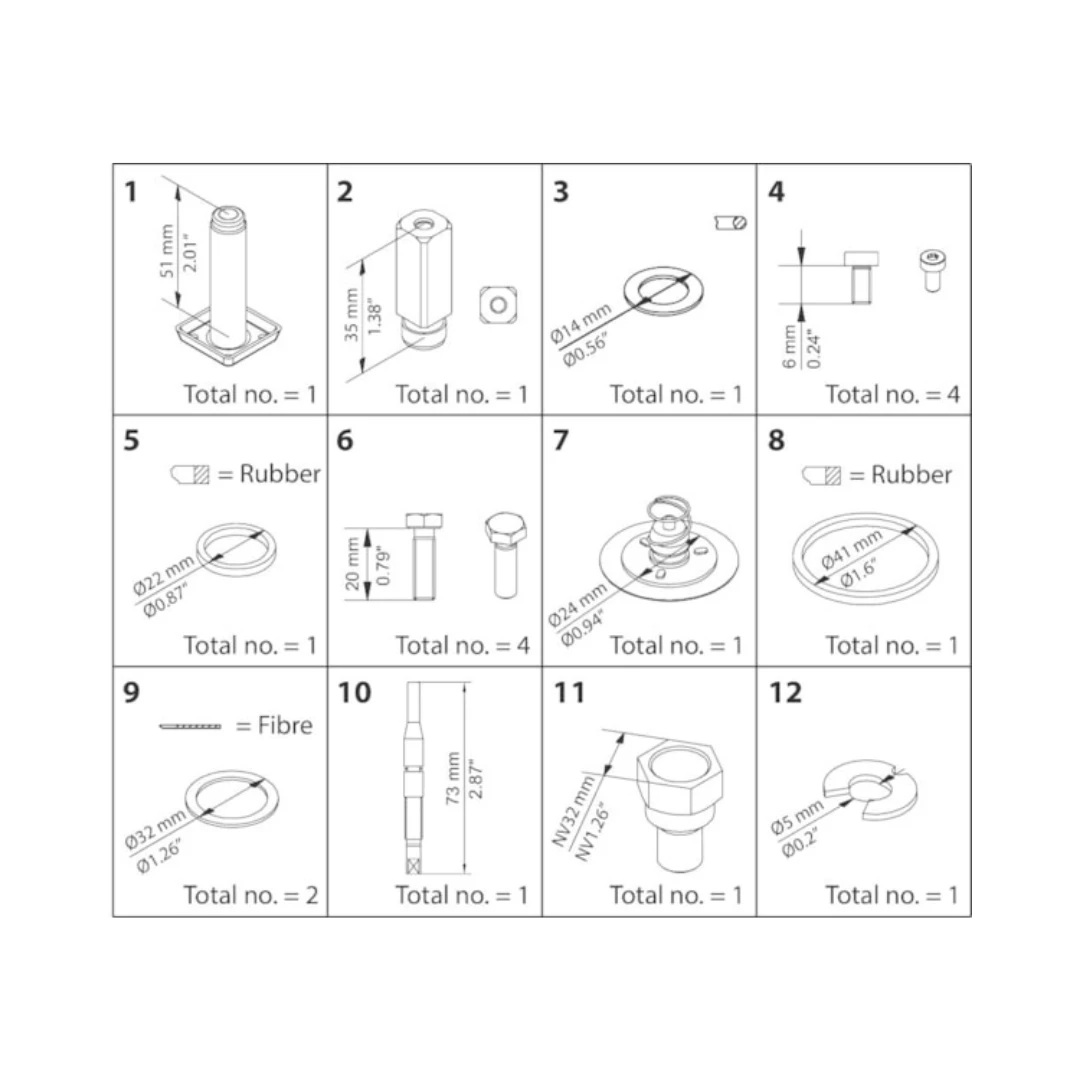 Conjunto de vedações para EVRAT 10 versão antiga, ideal para bases instaladas.