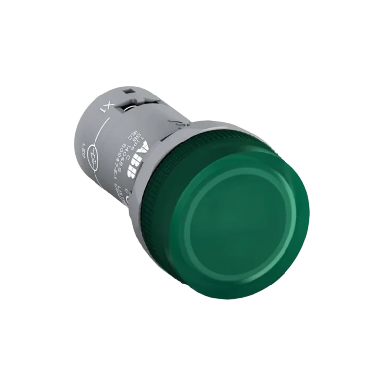 Sinaleiro verde com LED 24 V AC/DC para indicação em painéis de comando, alta durabilidade e baixo consumo. • Tensão: 24 V AC/DC • Cor: verde • Diâmetro do sistema: Ø22 mm • Lente: alta visibilidade • Vida útil: estendida (LED) • Montagem: frontal em painel; grau de proteção conforme cabeçote
