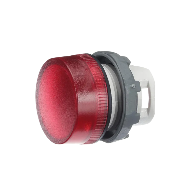Sinaleiro vermelho Ø22 mm para indicação de alarme/parada. • Cor: vermelho • Sistema: Ø22 mm • Iluminação: LED/lâmpada (conforme base) • Montagem: painel, fixação por porca