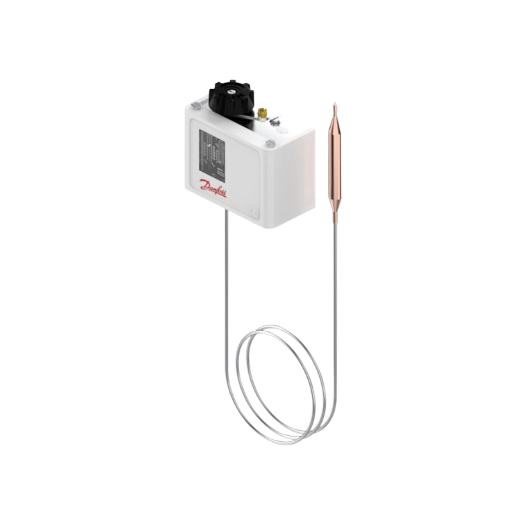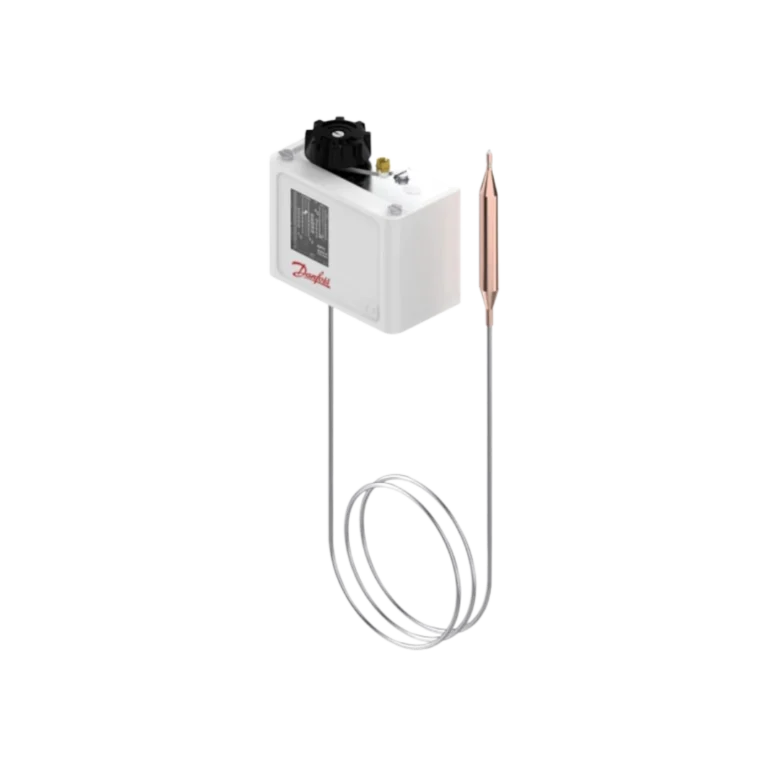 KP79 para temperaturas elevadas, com bulbo/capilar de 2 m para instalação flexível.