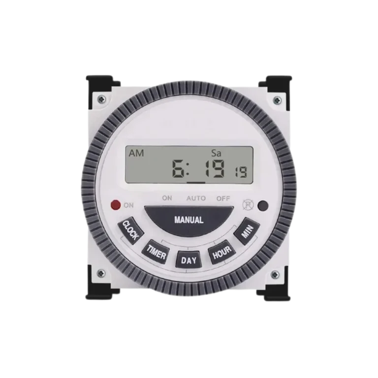 Timer programável diário/semanal para trilho DIN, ideal para comandos de iluminação, bombas e cargas gerais em 12 Vcc. • Alimentação: 12 Vcc • Canal: 1 relé (1 contato) • Programação: diária/semanal, múltiplos eventos • Interface: LCD com teclas • Montagem: trilho DIN