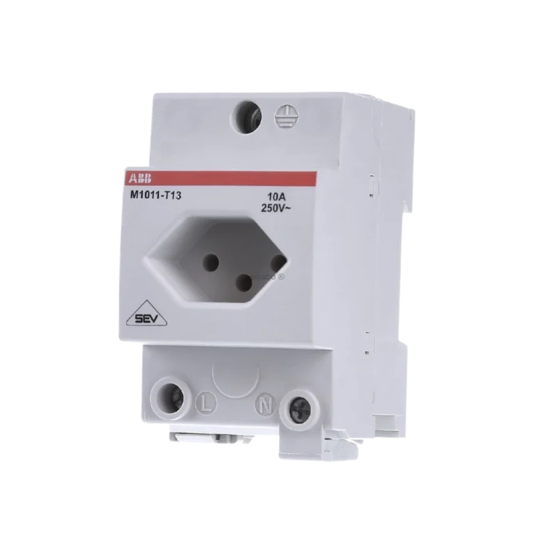 Tomada modular 10 A para montagem em espelhos/canais, ideal para instalações prediais padronizadas. • Corrente nominal: 10 A • Tensão nominal: 250 V~ (típ.) • Montagem: módulo em suporte/espelho compatível • Conexão: bornes a parafuso