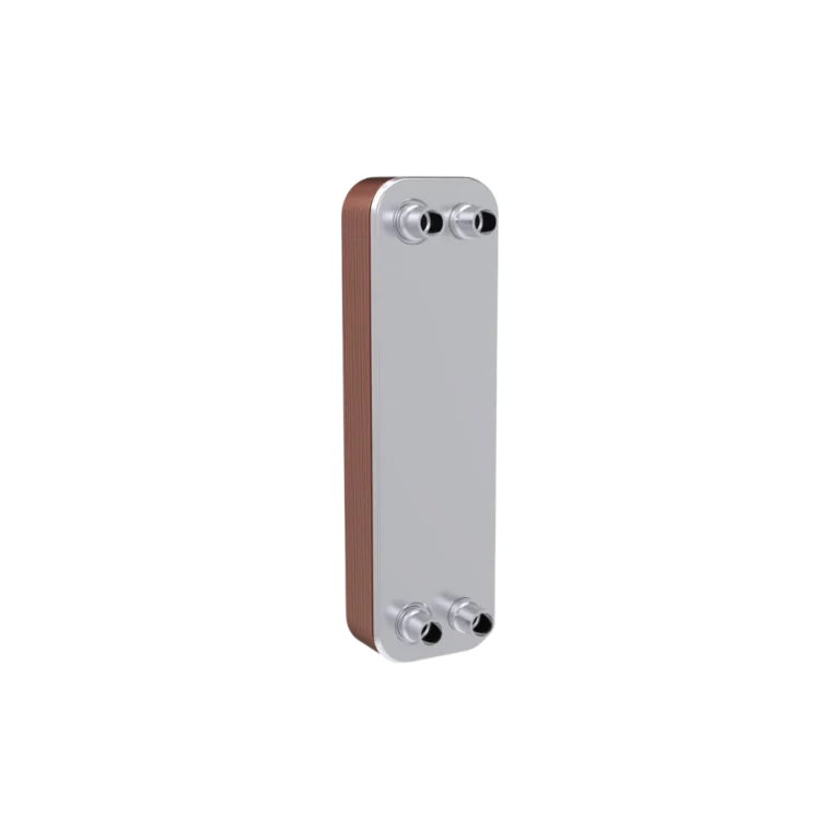 Trocador de calor a placas brasadas, compacto, alta eficiência térmica em HVAC/refrigeração.