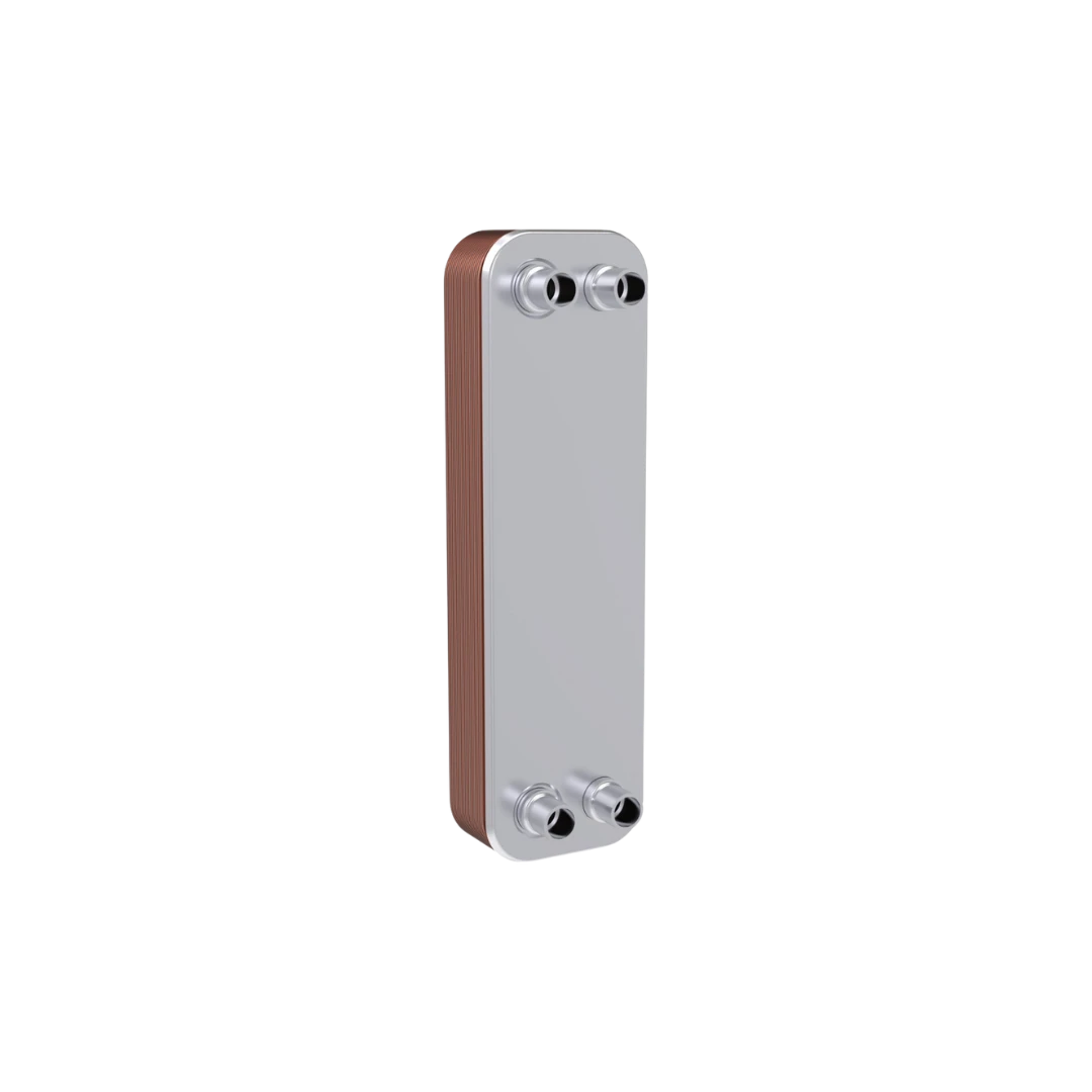 Trocador de calor a placas brasadas, compacto, alta eficiência térmica em HVAC/refrigeração.