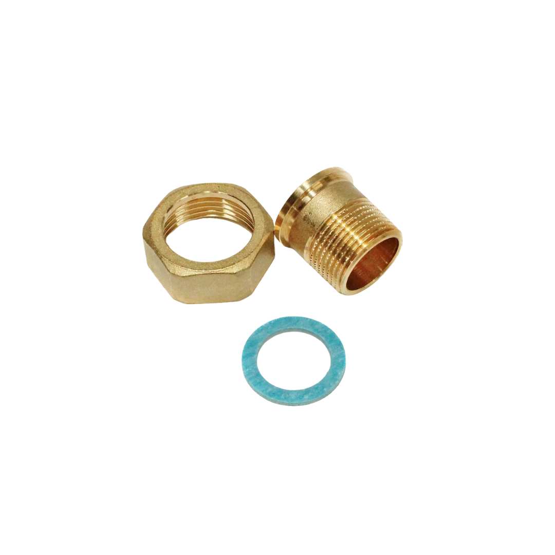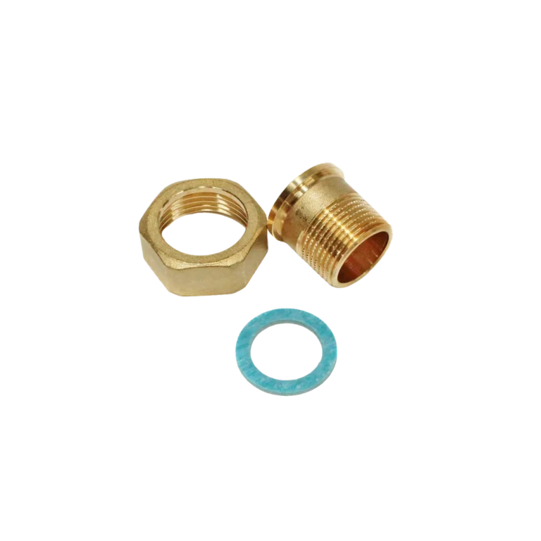 União com rosca para válvula AB-QM DN50, permitindo montagem/desmontagem sem solda e facilitando manutenções.